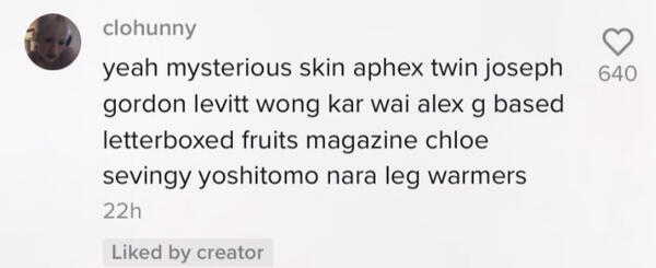 i like vkei, ff/kingdom hearts, blur, oneohtrix point never, thaiboy digital, xmal deutschland, arca, panchiko, massive attack, film in general, bandcamp, loli in the early 20s, pi'erre bourne, shygirl, azealia banks, /mu/ drama, yves tumor, lil cherry, texhnolyze and hyperpop(groomer not enby one) most likely to tweet about hyperpop discourse and dg though